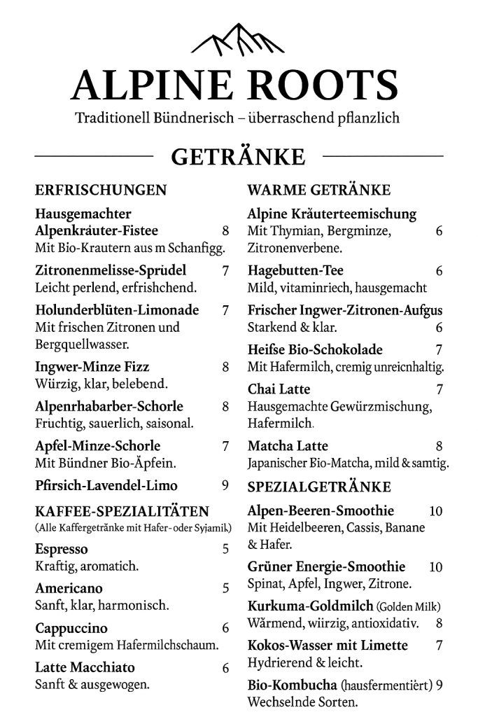 In der Küche von Alpine Roots verbinden wir die tiefe Verbundenheit zu den Bündner Bergen mit einer zeitgemässen, rein pflanzlichen Küche.