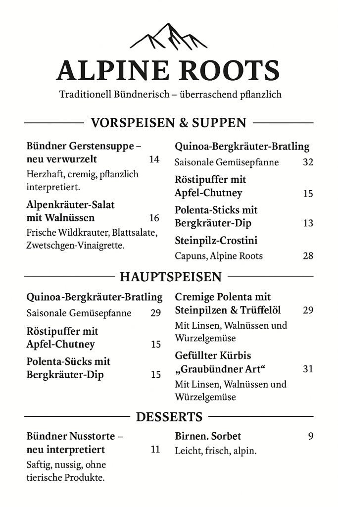 Alpine Roots steht für pflanzliche Alpenküche mit Charakter – pur, authentisch und im Herzen der Berge zuhause.